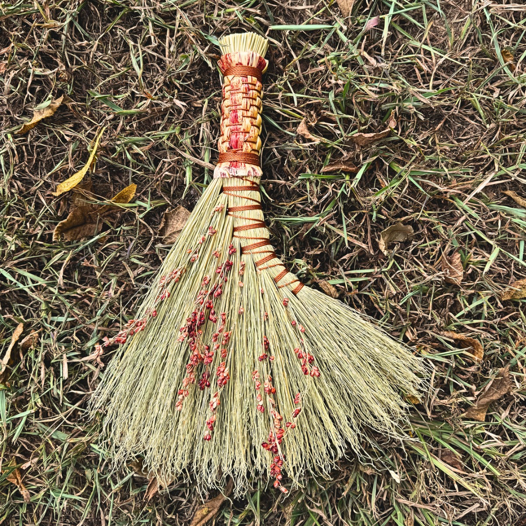Right | FolkSchool Broom natural seeded broomcorn I’d helped seed as a Workstudy, made while a Student Host at John C. Campbell Folk School. 2024.